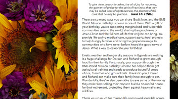 An update containing stories from projects supported by the Birthday Scheme, showing the difference your members can make to specific people and communities. Pop one in with each birthday card you send as part of the Birthday Scheme. These bulletins come individually to allow you to tailor our resources to your church's needs and to avoid waste. Please order a quantity that suits you.