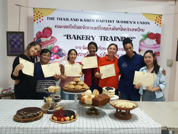 Sarah ran the third bakery training session at the Thailand Karen Baptist Women's Union (TKBWU) building. The students completed around 16 –18 hours of training over several days, creating a selection of non-baked, steamed/baked cakes and breads. It was an enjoyable time for everyone.