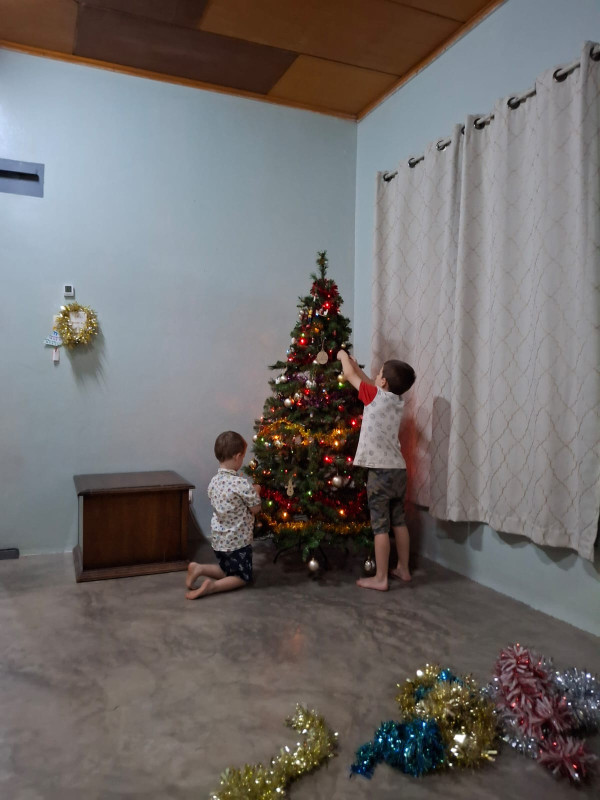 The sunshine meant Christmas didn't have the usual feel, but it didn't stop us decorating and getting into the festive spirit. We had brought our artificial Christmas tree over from the UK in the summer, complete with fairy lights and tinsel, so that took pride of place in our lounge. We also made an activity of making paper chains and paper snowflakes with the children to complete the decorations.