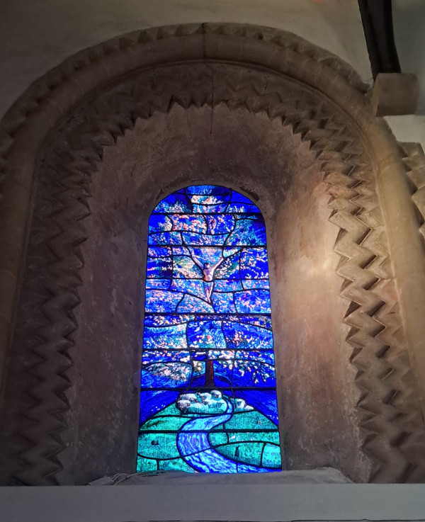 In all of this, we have been fortunate to experience moments that remind us of God's presence in the midst of what seems to be endless waiting. As Spring arrives, we have been out walking, exploring the churches around Didcot which seem to have a large number of beautiful modern stained-glass windows. At Iffley we were reminded of God reconciling the world to himself through Christ ,with a Roger Wagner window showing the tree of life with the river of life pouring out from its roots. Again, as the sun shone through the window at Blewbury church, we saw God as Alpha and Omega surrounded by eight large resonating circles representing the bells hung in the tower above. They have called out through the centuries to the village and surrounding countryside and continue inviting us and future generations into the presence of God who is the beginning and end of all things.