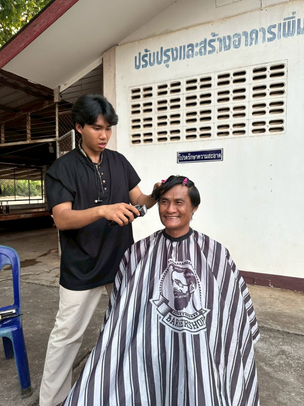 Seven young people from a Bible College in Bangkok came on a mission trip, spending a week at each of our three churches. They were involved in visiting, youth camps, church services and evangelism. One young man, Aom, used his skills as a barber to connect with local people as a means to share the gospel.